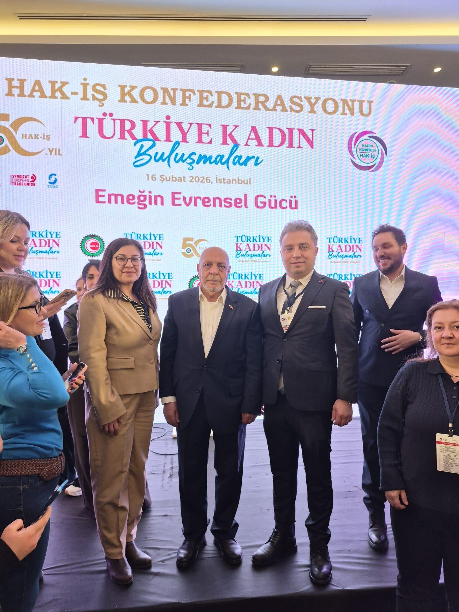 HAK-İŞ Konfederasyonu 50. Yıl etkinliklerimiz kapsamında gerçekleştirilen “Türkiye Kadın Buluşmaları'nın altıncısı “Kayıtlı, Güvenli ve Güvenceli Şehirler” temasıyla İstanbul Avrupa'da, Sendikamız Genel Yönetim Kurulu Üyesi ve İstanbul Anadolu Bölge Başkanı Dr. Mümin Evren ve Sendikamız İstanbul Avrupa Bölge Başkanlığı Yönetim Kurulu Üyesi İnci Bulut Kesici'nin katılımıyla gerçekleşti.